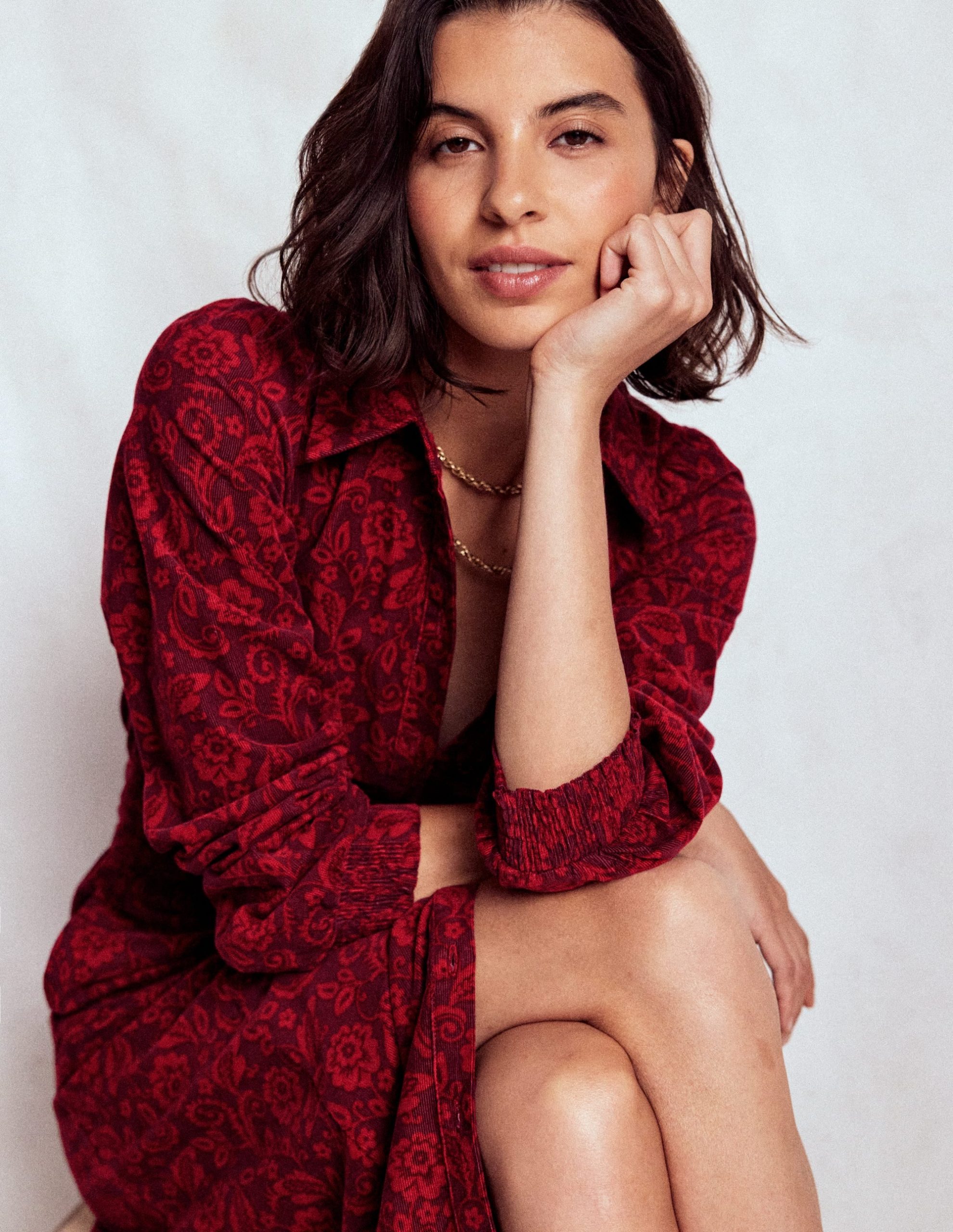 Clara Cord Midi Dress-Red Liquorice. Ornate Flora