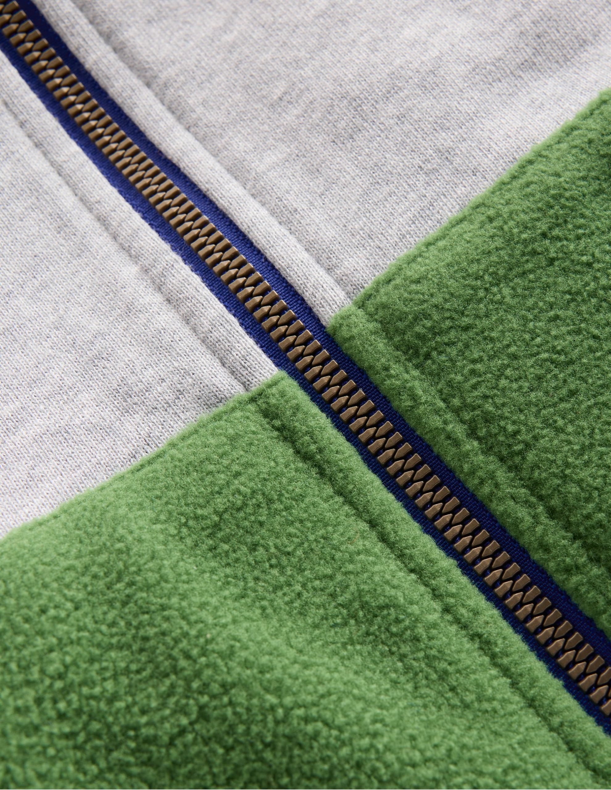 Cosy Zip Through Sweatshirt-Grey Marl Colourblock