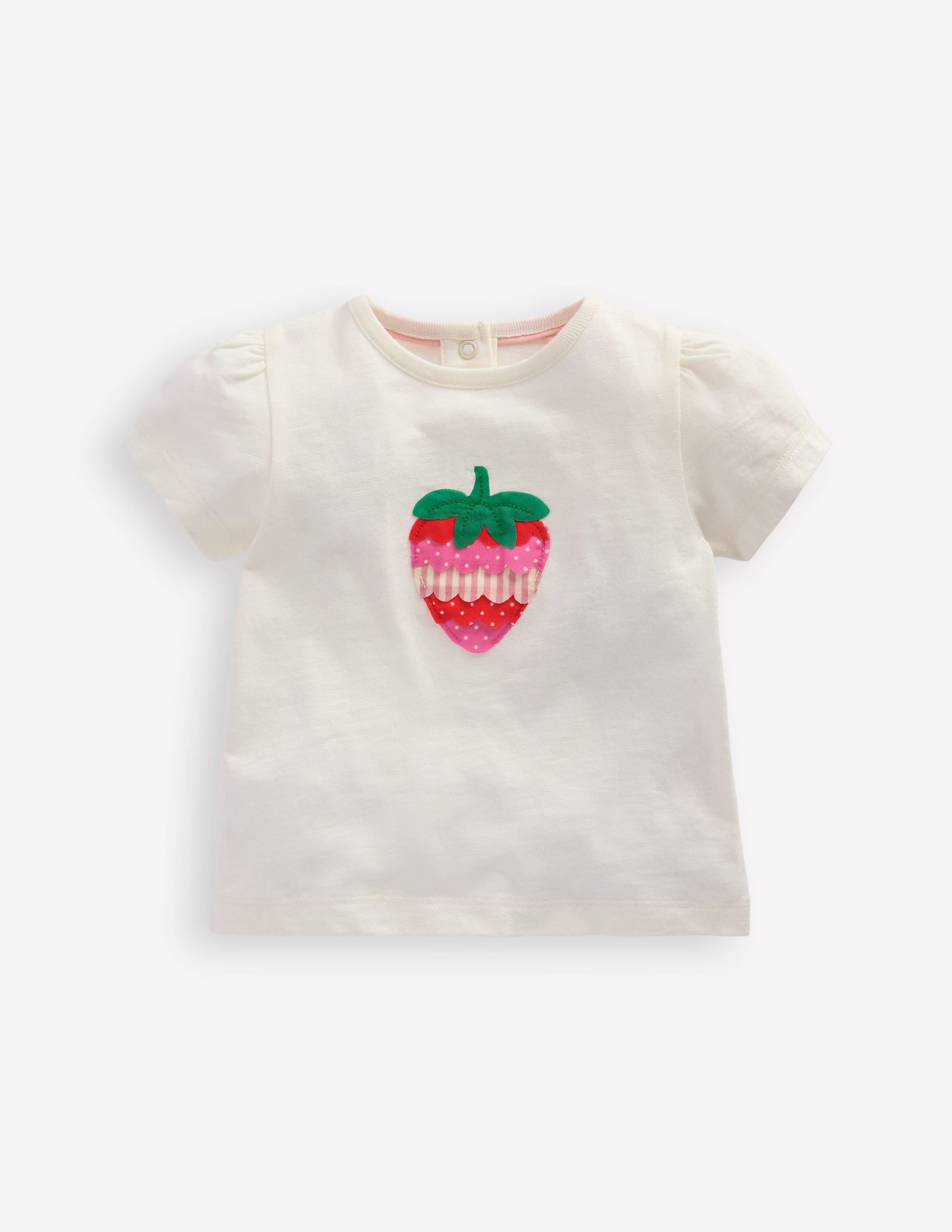 Girls Puff Sleeve Logo T-Shirt-Soft Ivory