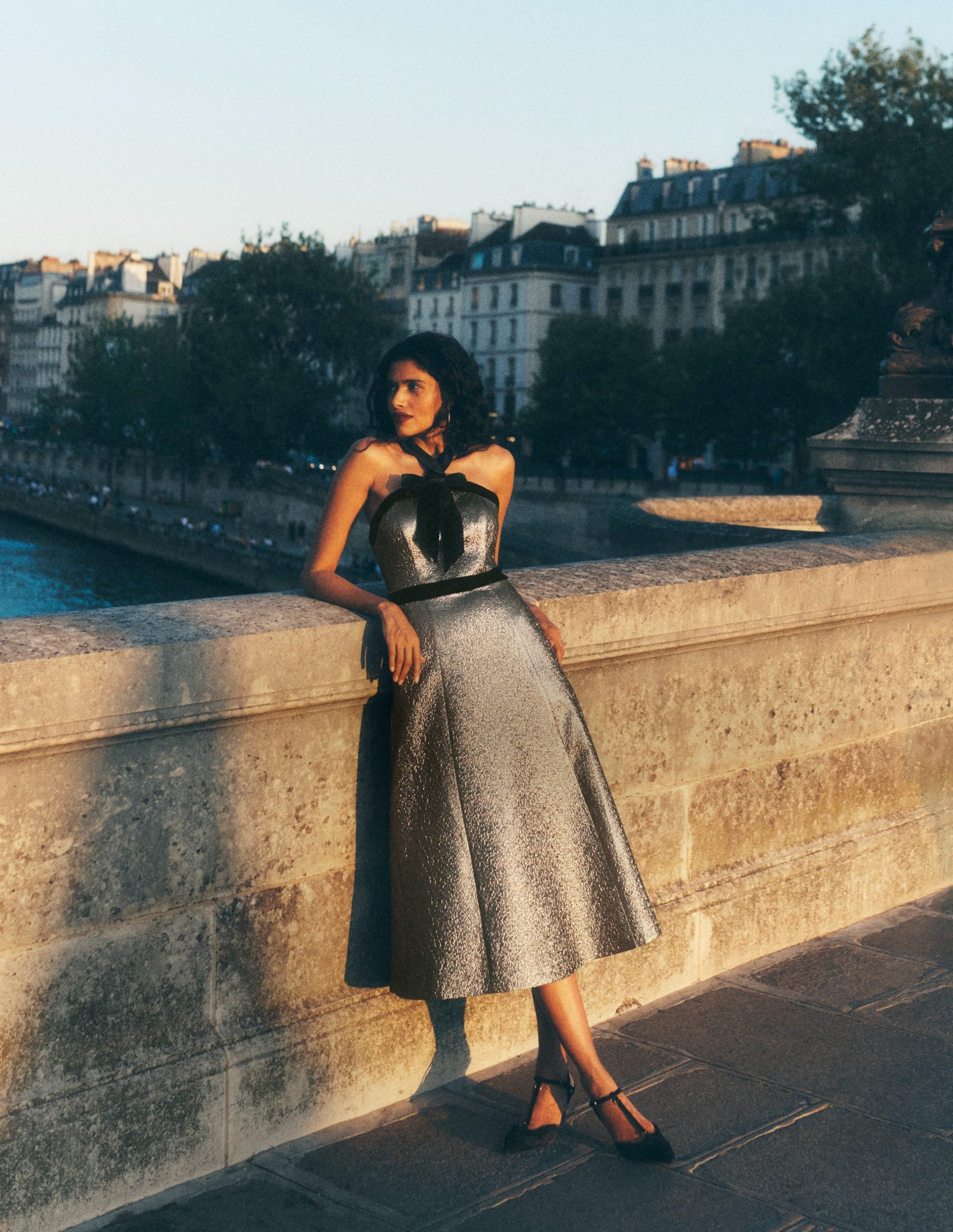 Nothing says I’m ready to party like a gold halterneck dress. We’ve added a velvet bow. deep pockets and a flattering fit-and-flare shape to secure this as your favourite. You can add a black blazer. heels and a good time.