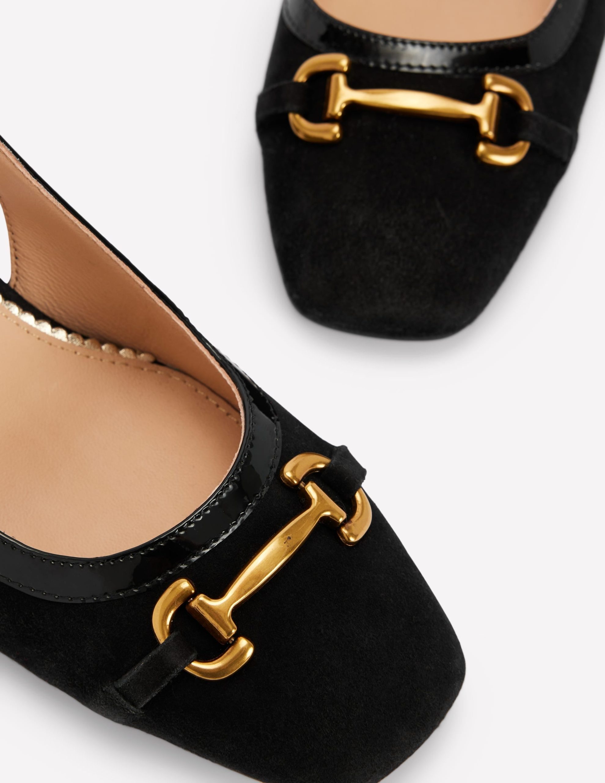 Our Iris slingbacks have a pointed toe and smart snaffle detailing. Thanks to their chunky heel. they pass the dinner-to-dancing test. too.