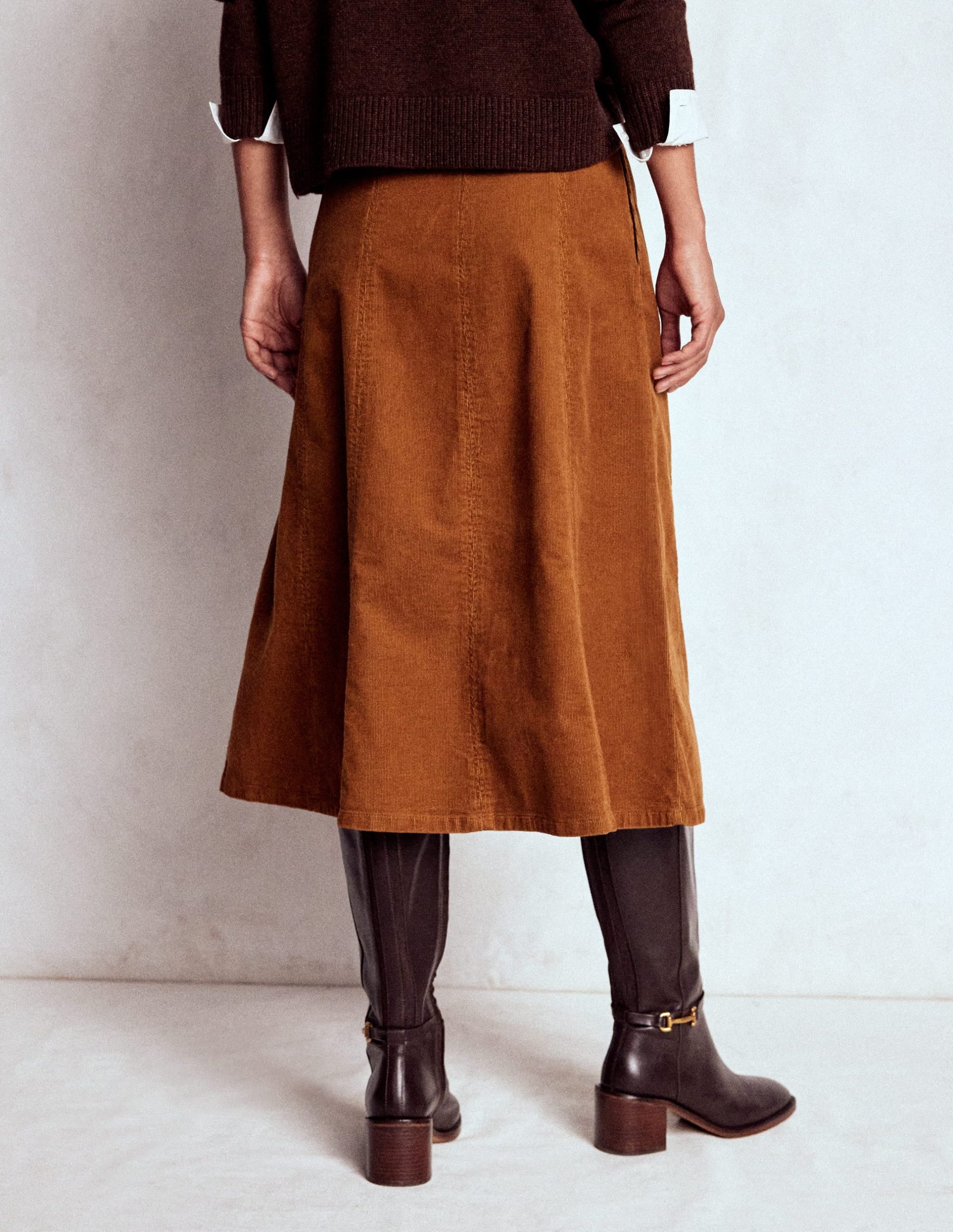 Joy by name. joy by nature. Swoosh through the seasons in our cord midi skirt which comes in lots of lovely colours. We like to team ours with a fitted knit and sleek boots.