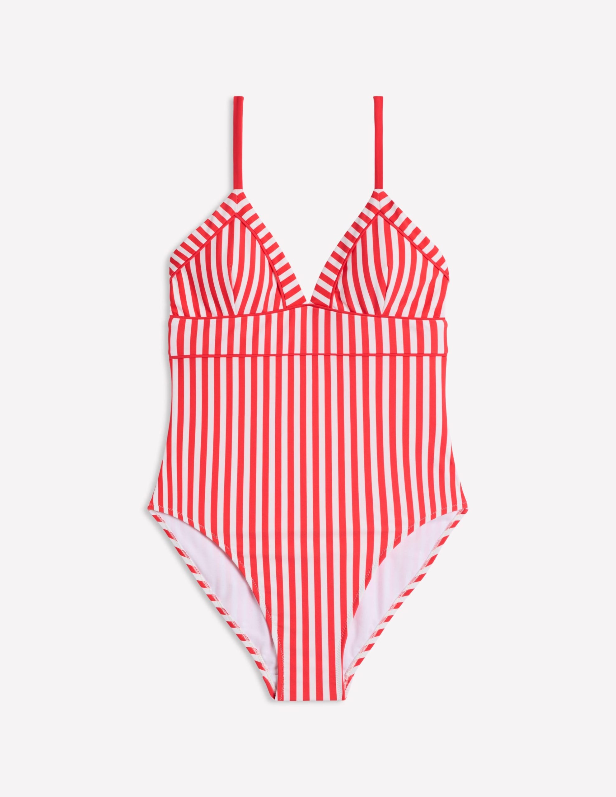 Kasos String V Neck Swimsuit-Coral Punch/ Ivory Stripe