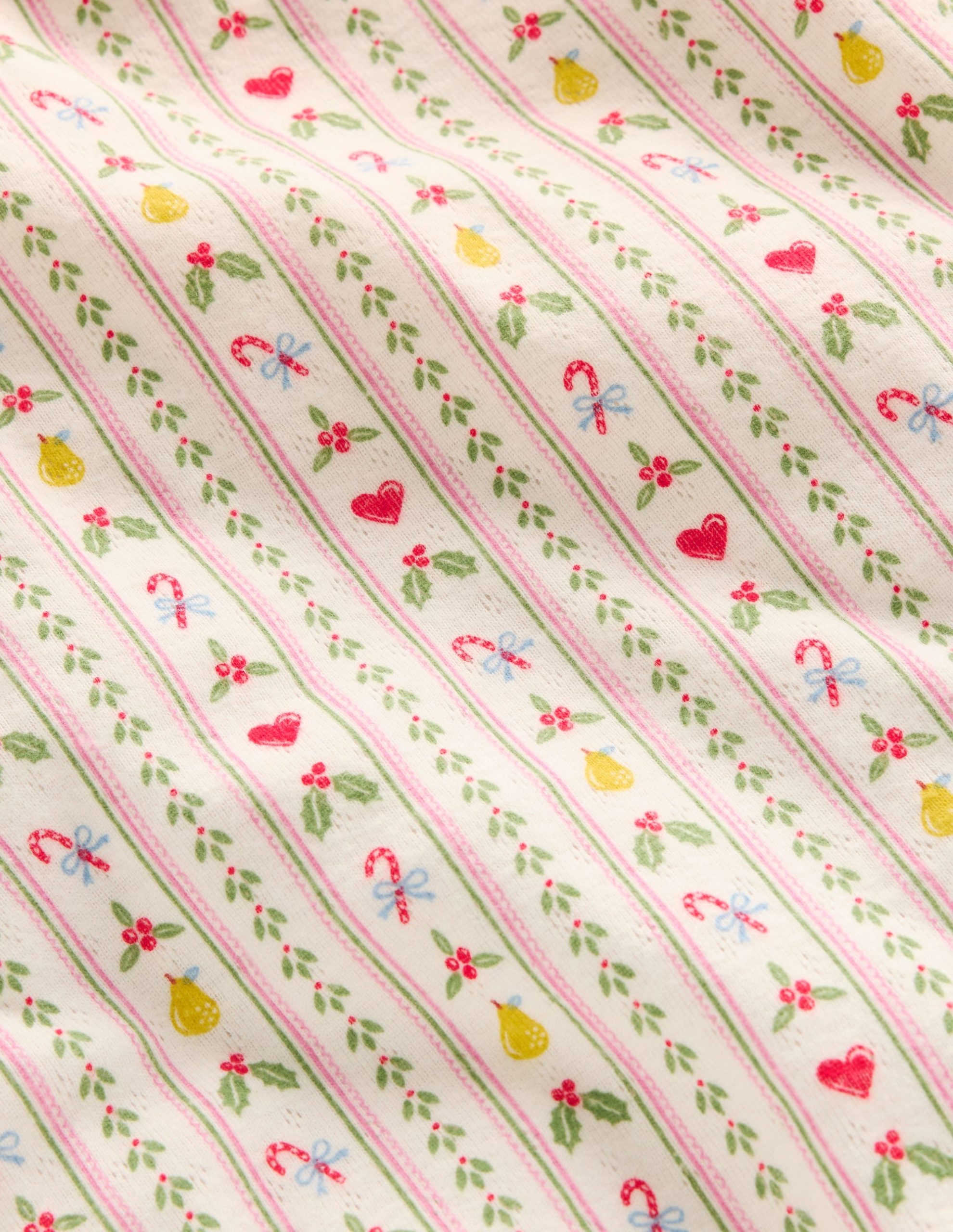 Long Sleeve Pointelle Top-Soft Ivory Nutcracker Stripe