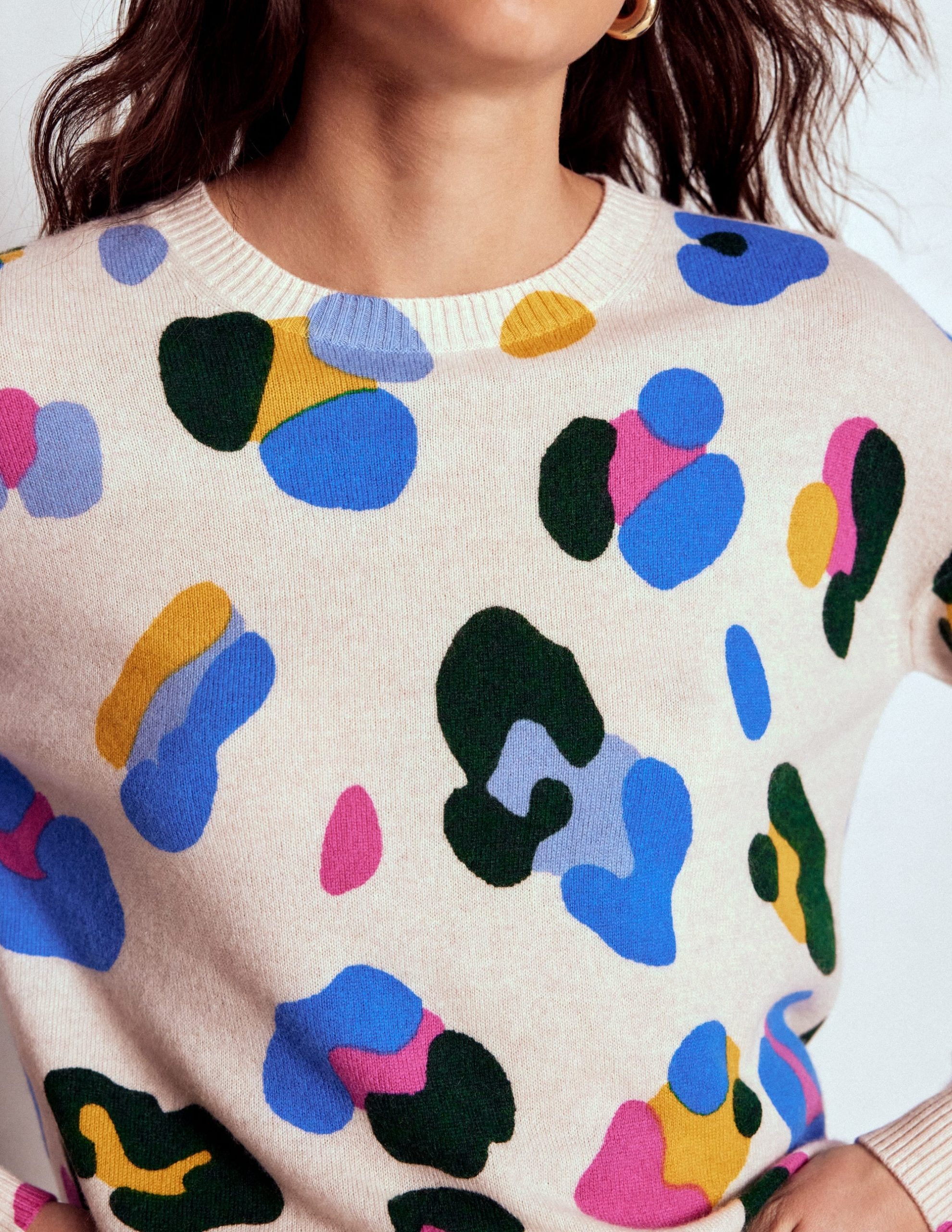 Lydia Cashmere Jumper-Warm Ivory. Leopard