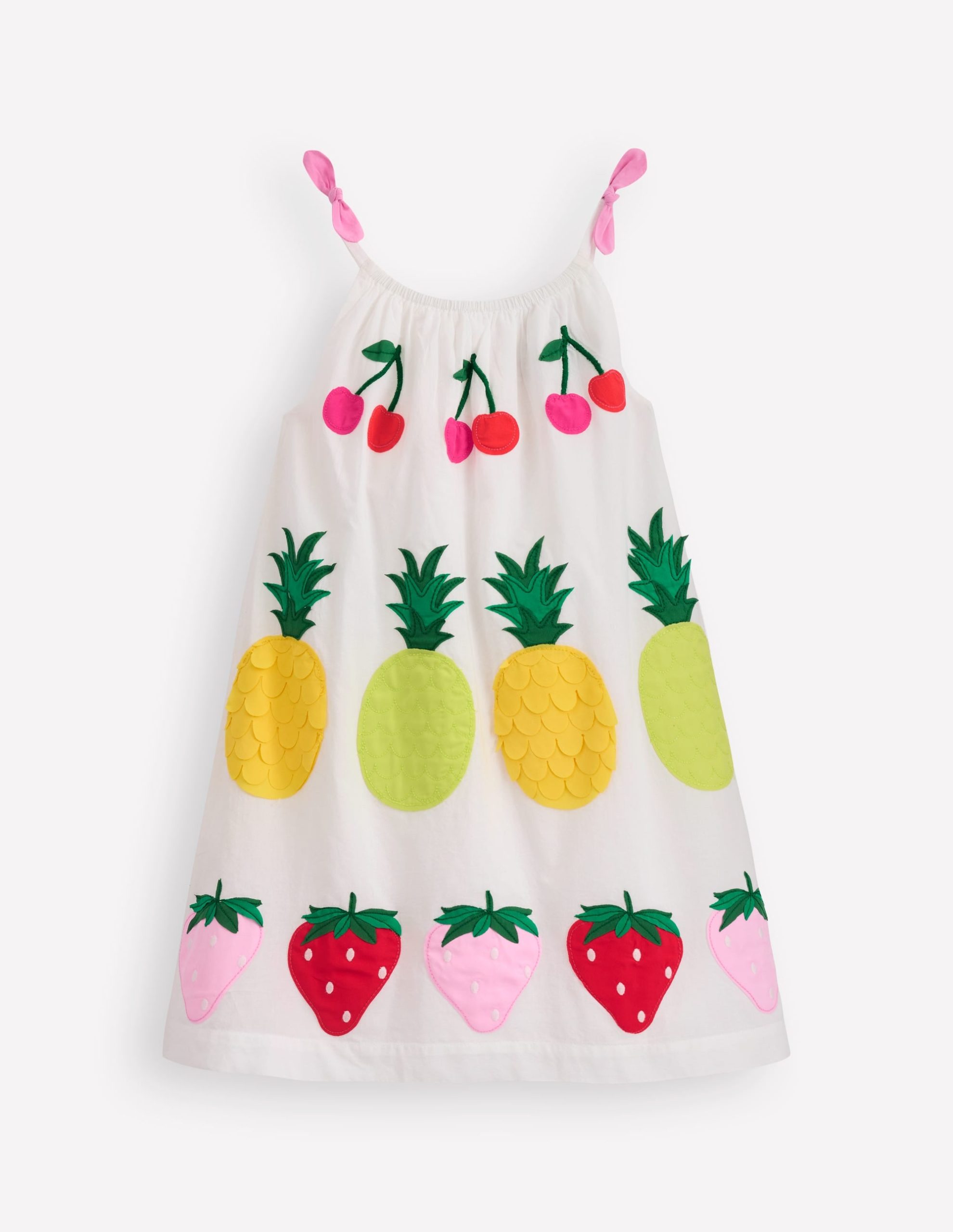 Strappy Appliqu?? Dress-Soft Ivory Fruit