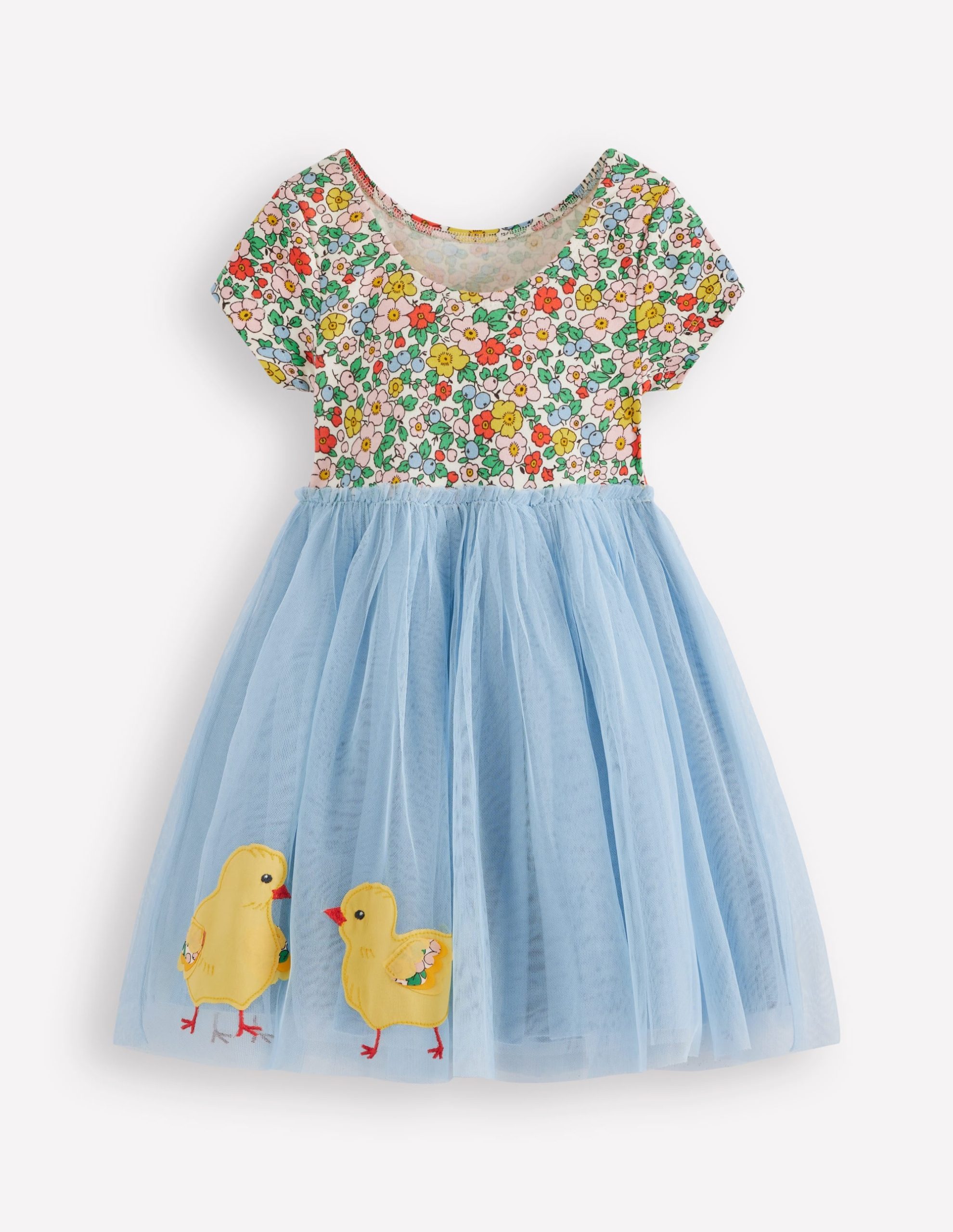 Ami Applique Tulle Dress-Pale Blue Chicks