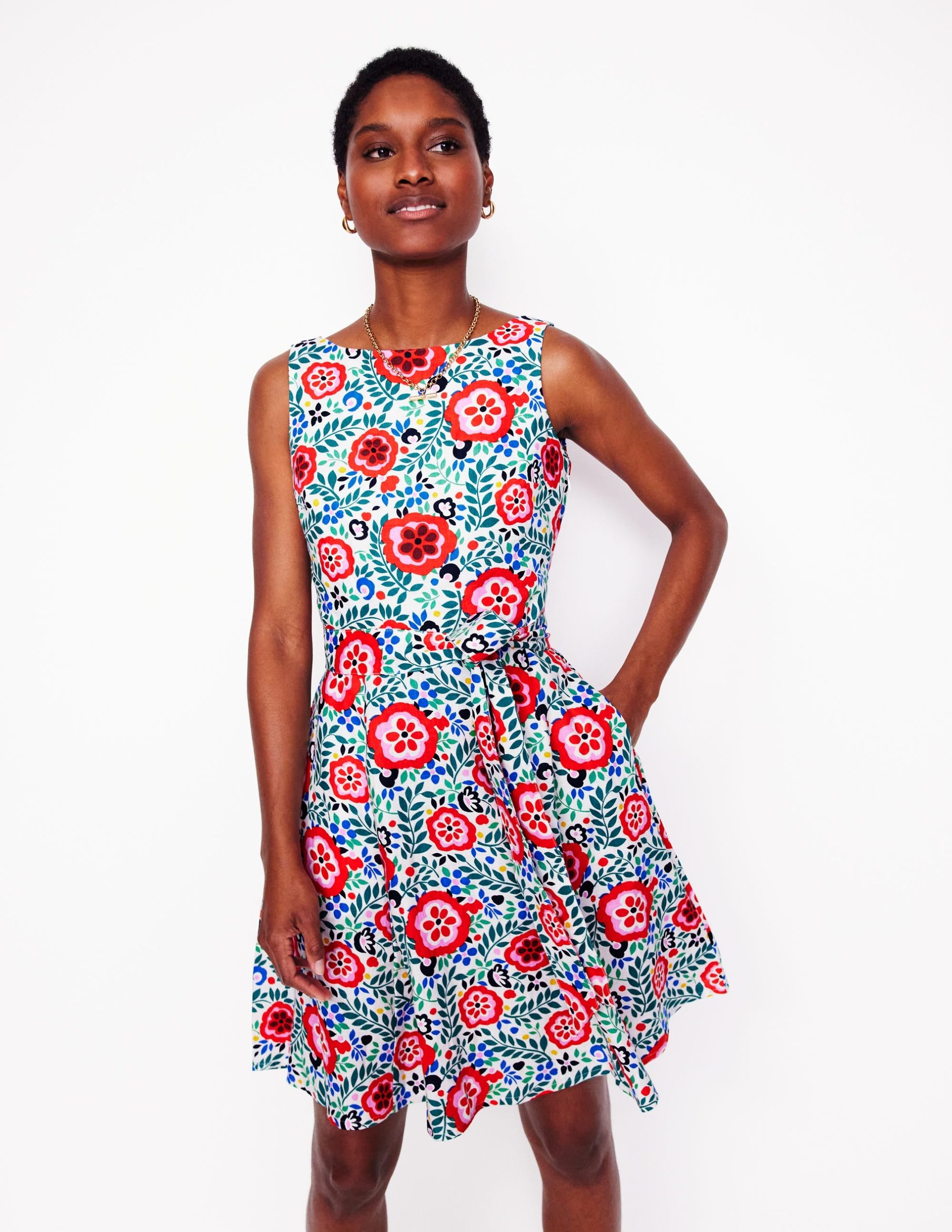 Anya Sleeveless Linen Dress-Multi. Foliage Scatter