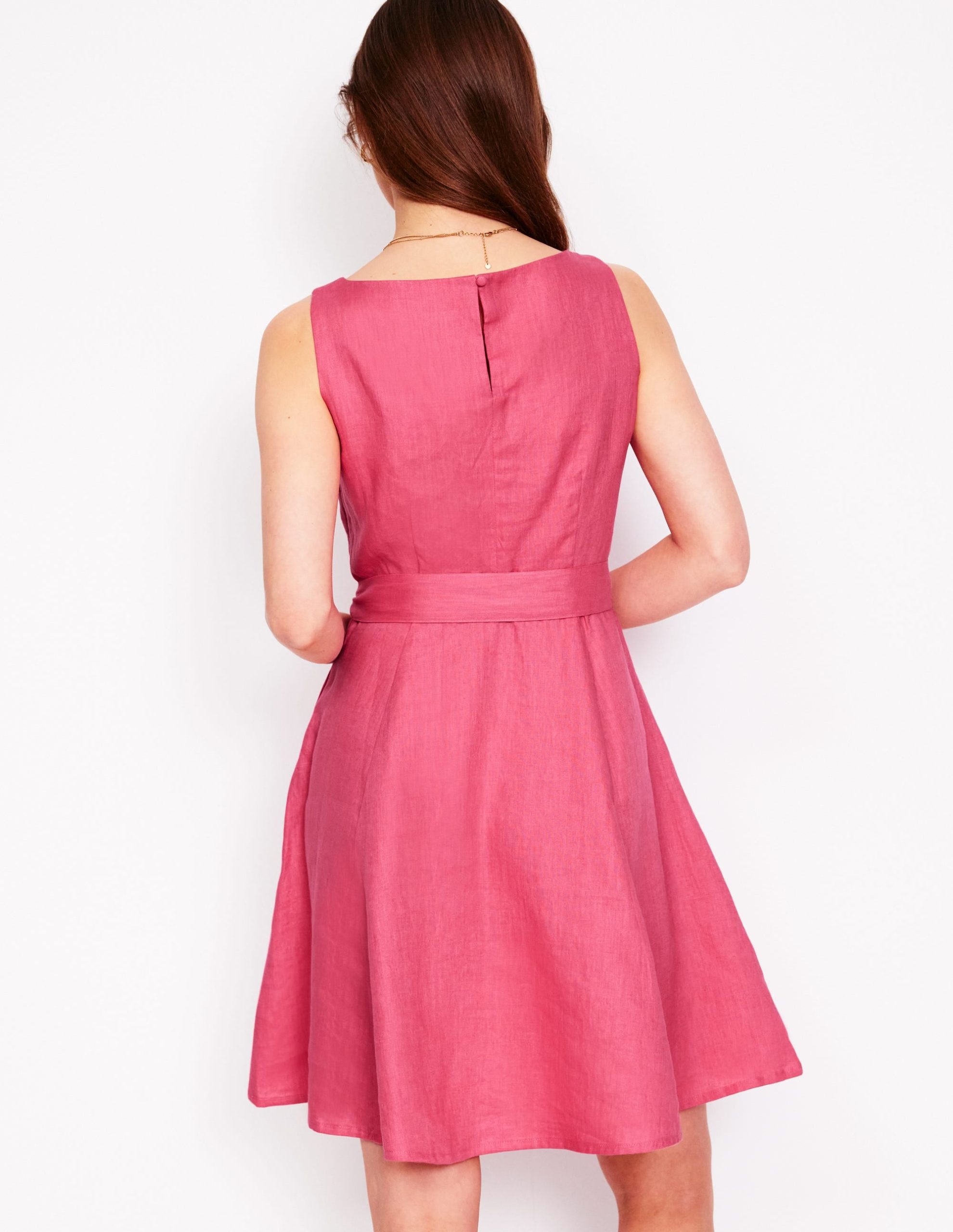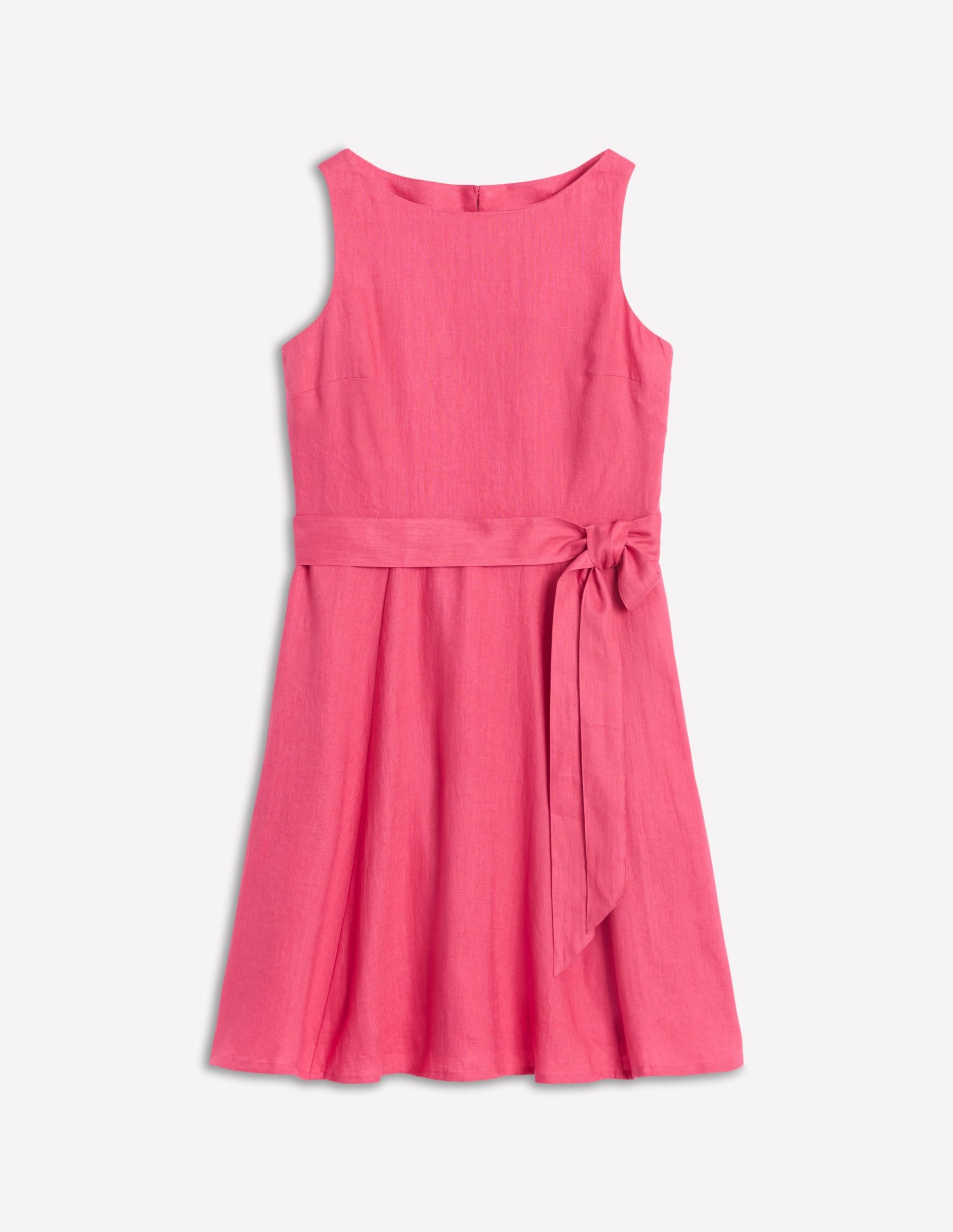 This effortless linen dress can be dressed up or down easy-peasy. It’s cut to create a sleeveless silhouette with a full skirt and side pockets. finished with a self-tie belt.