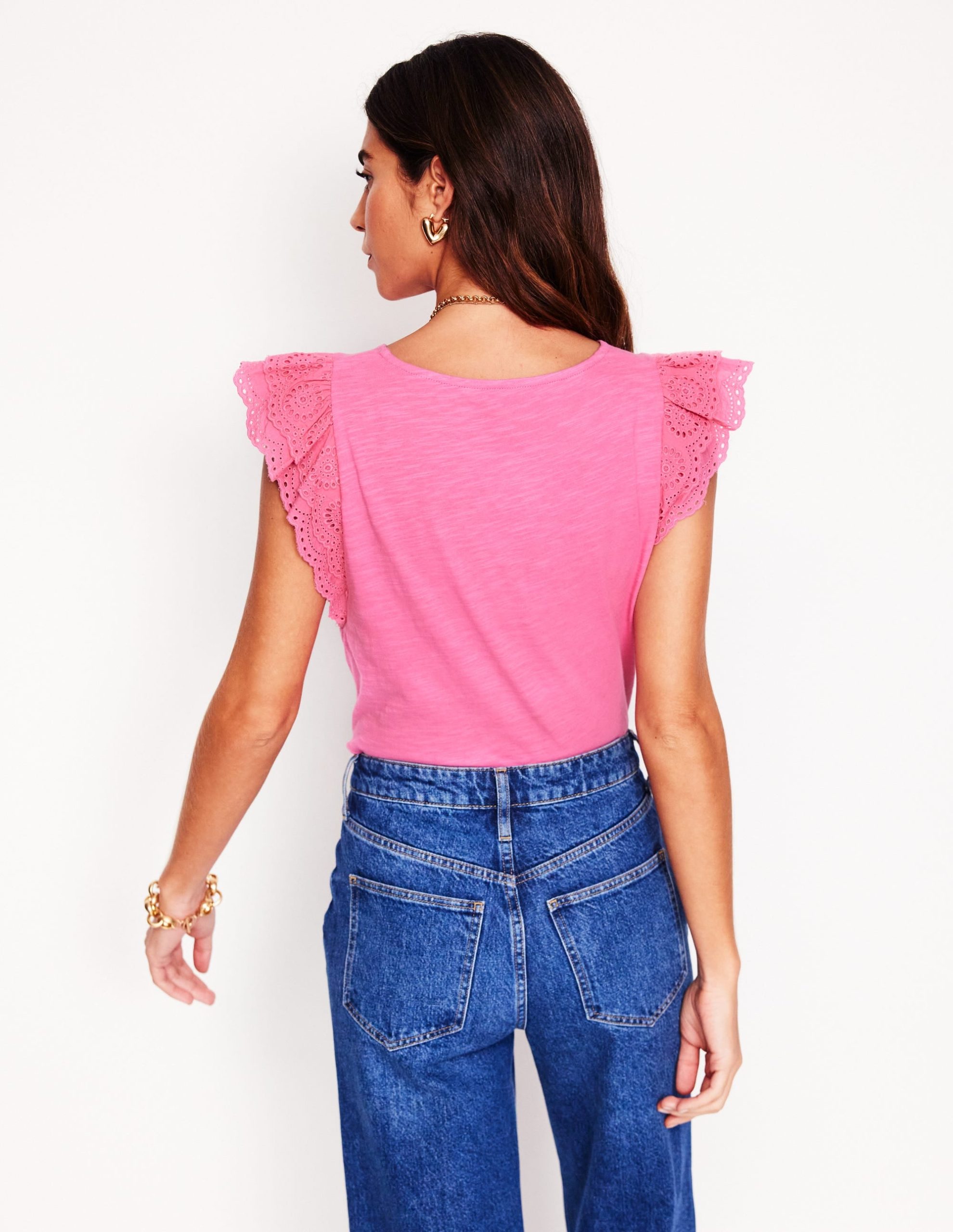 Belle Broderie Sleeve Top-Pink Rose