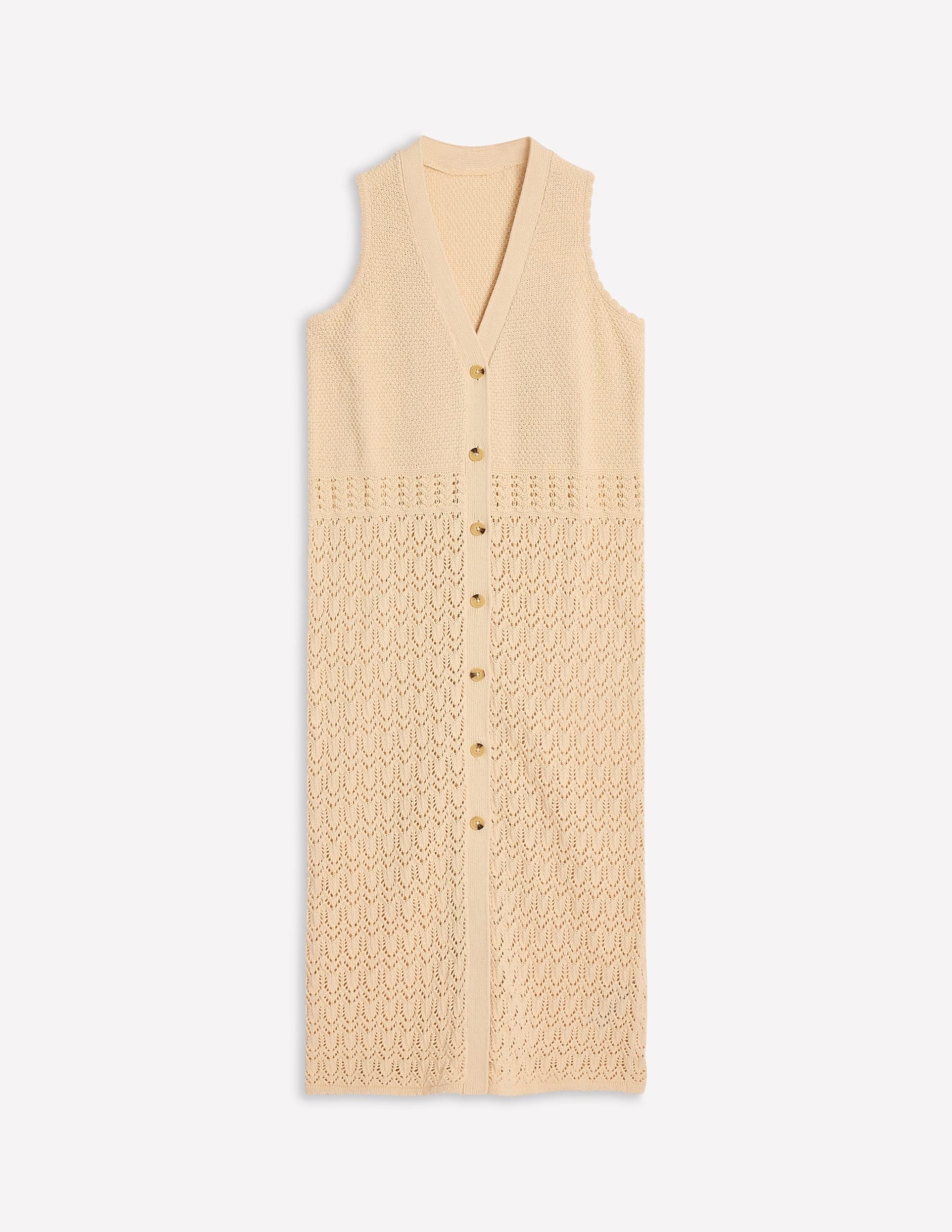 Cotton Sleeveless Cardigan-Warm Ivory