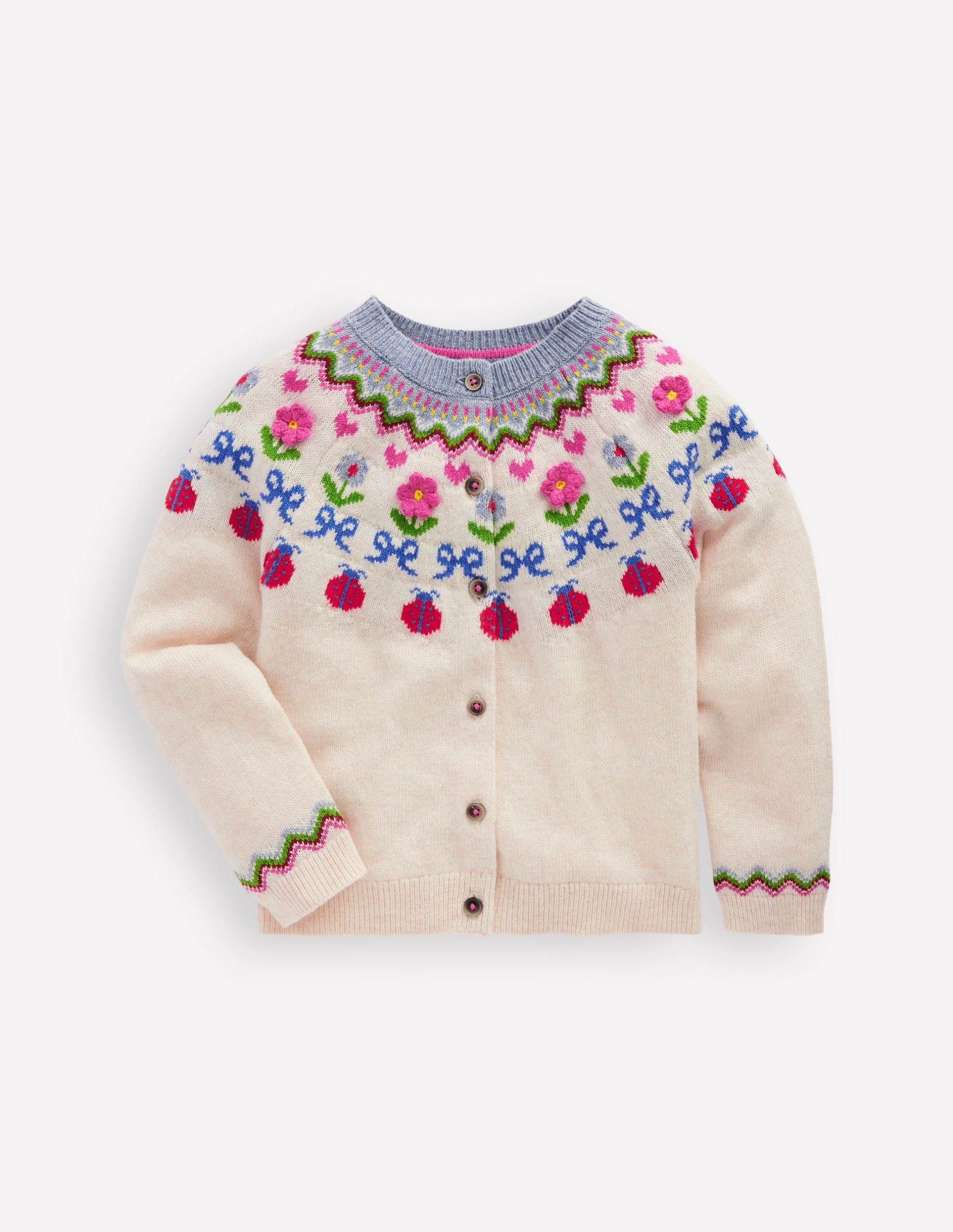 Edie Fair Isle Cardigan-Ecru Marl Flowers