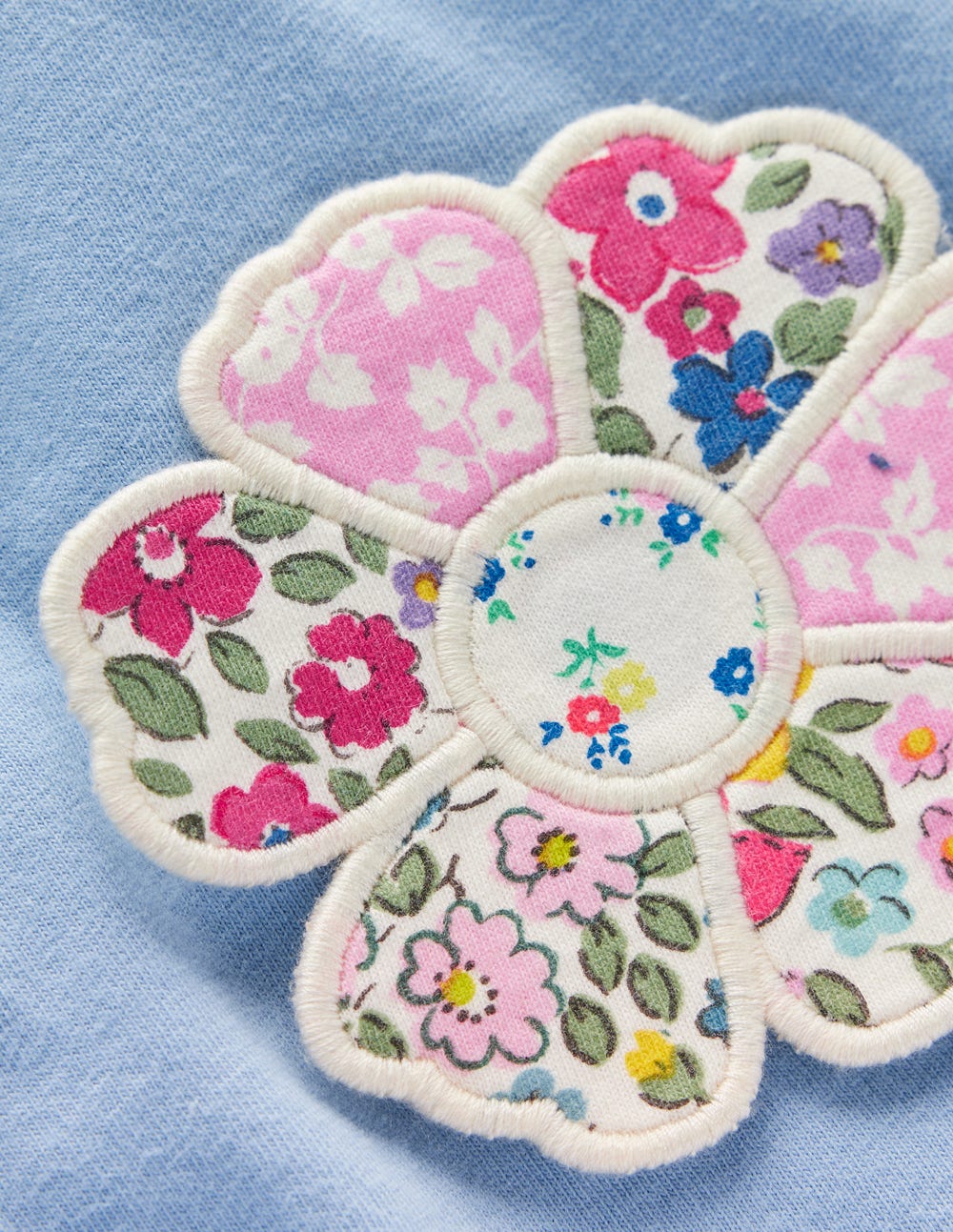 Frill Neck Appliqu?? T-shirt-Glacier Blue Flowers
