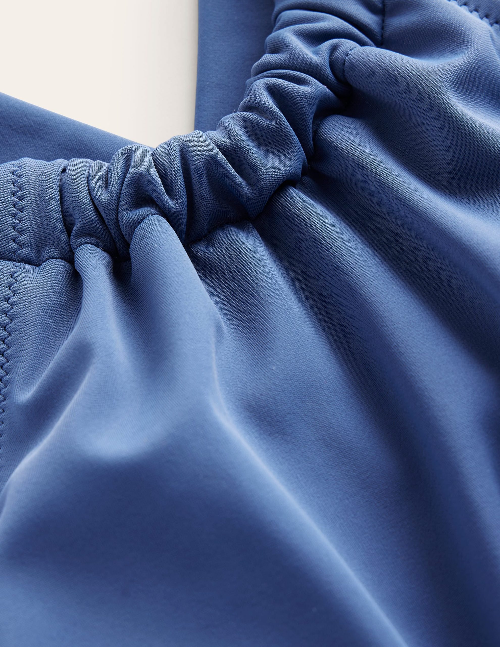This streamlined swimsuit has a high racer-style neckline and wide straps that cross over at the back. We’ve added fixed cups for additional support.