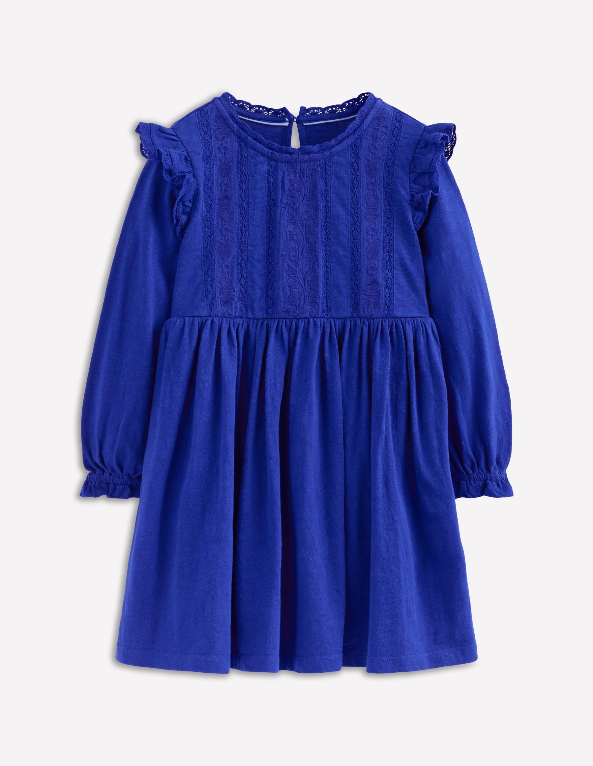 Lace Trim Jersey Dress-Bluejay