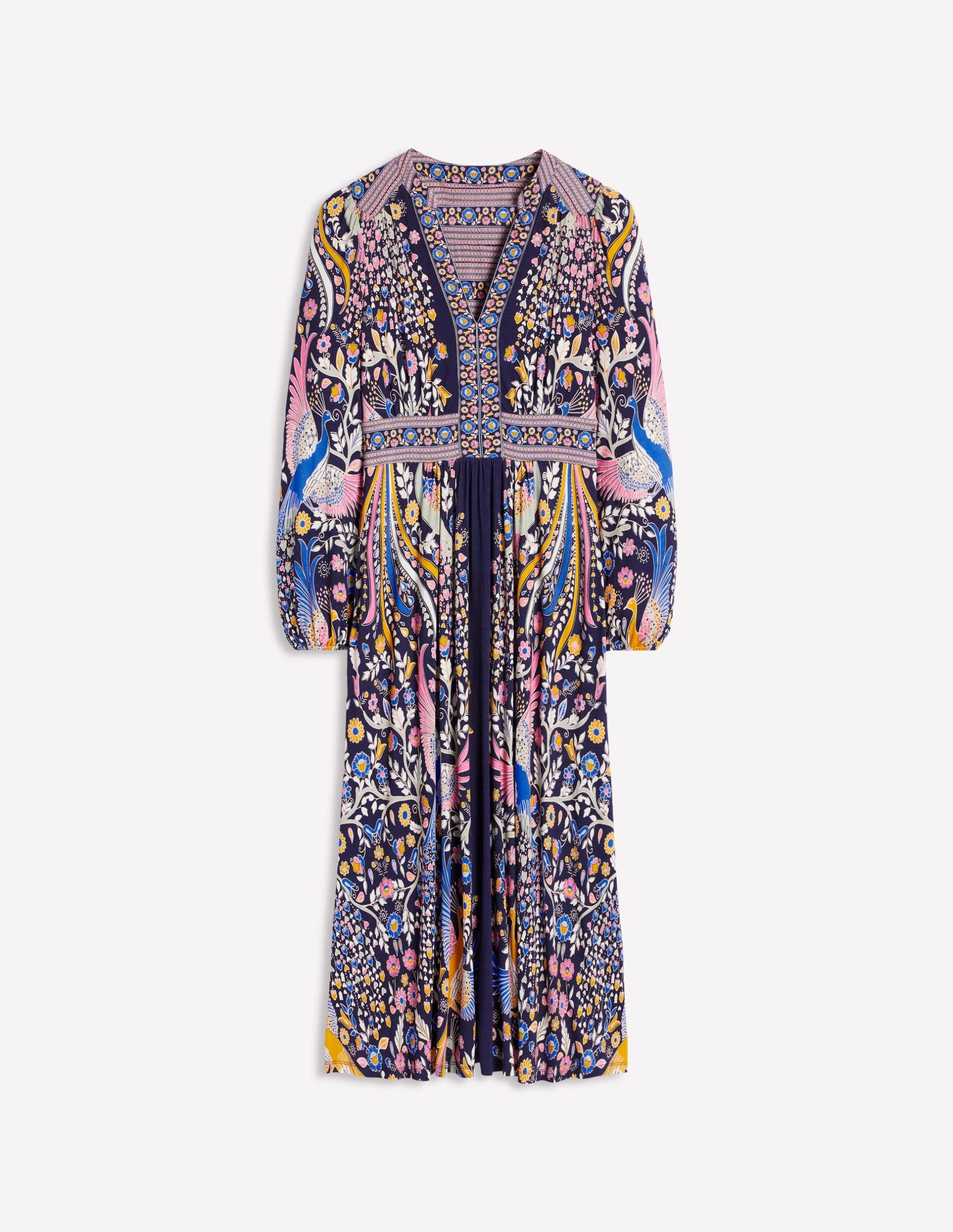 Lily Long Sleeve Midi Dress-French Navy.Enchanting Peacock