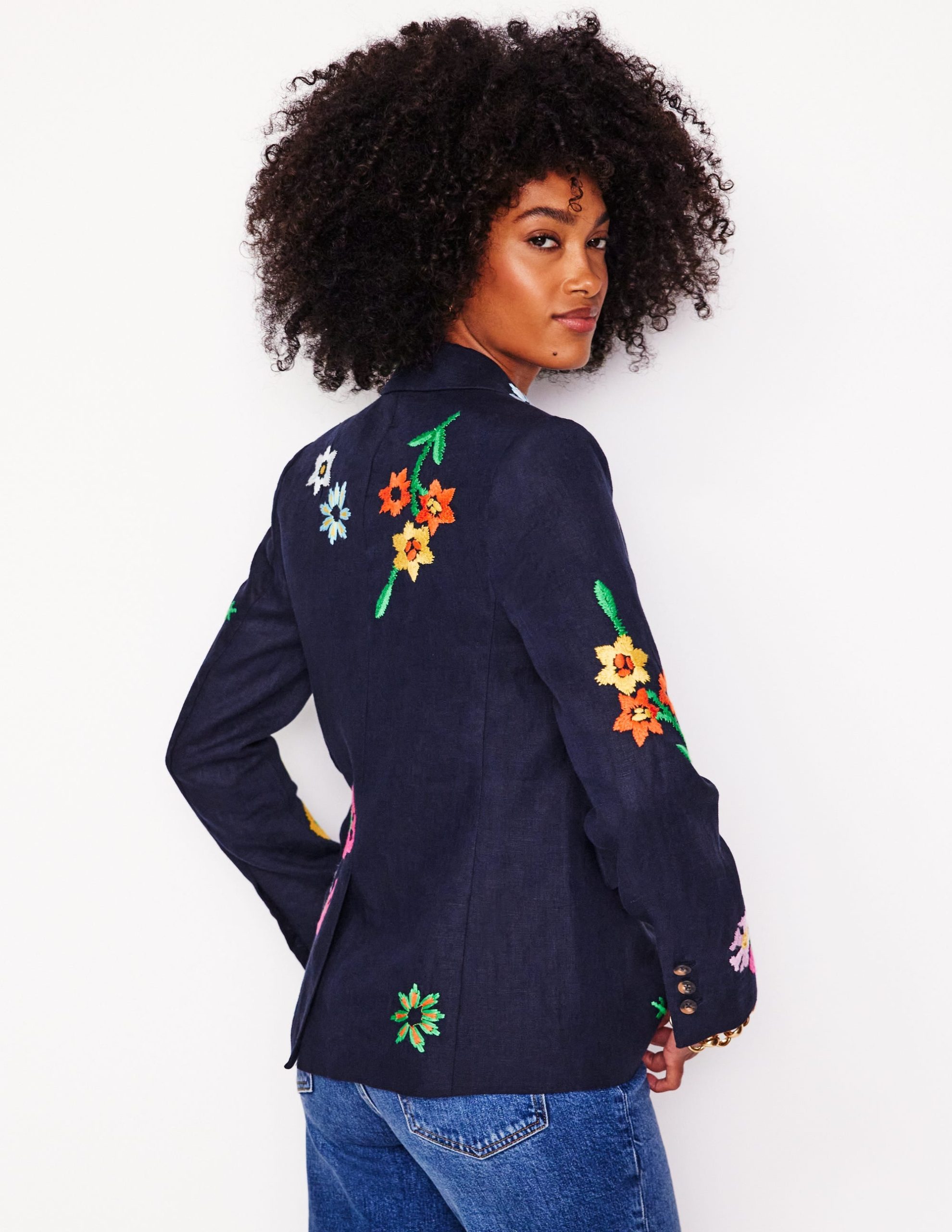 Marylebone Interest Blazer-Navy Embroidery