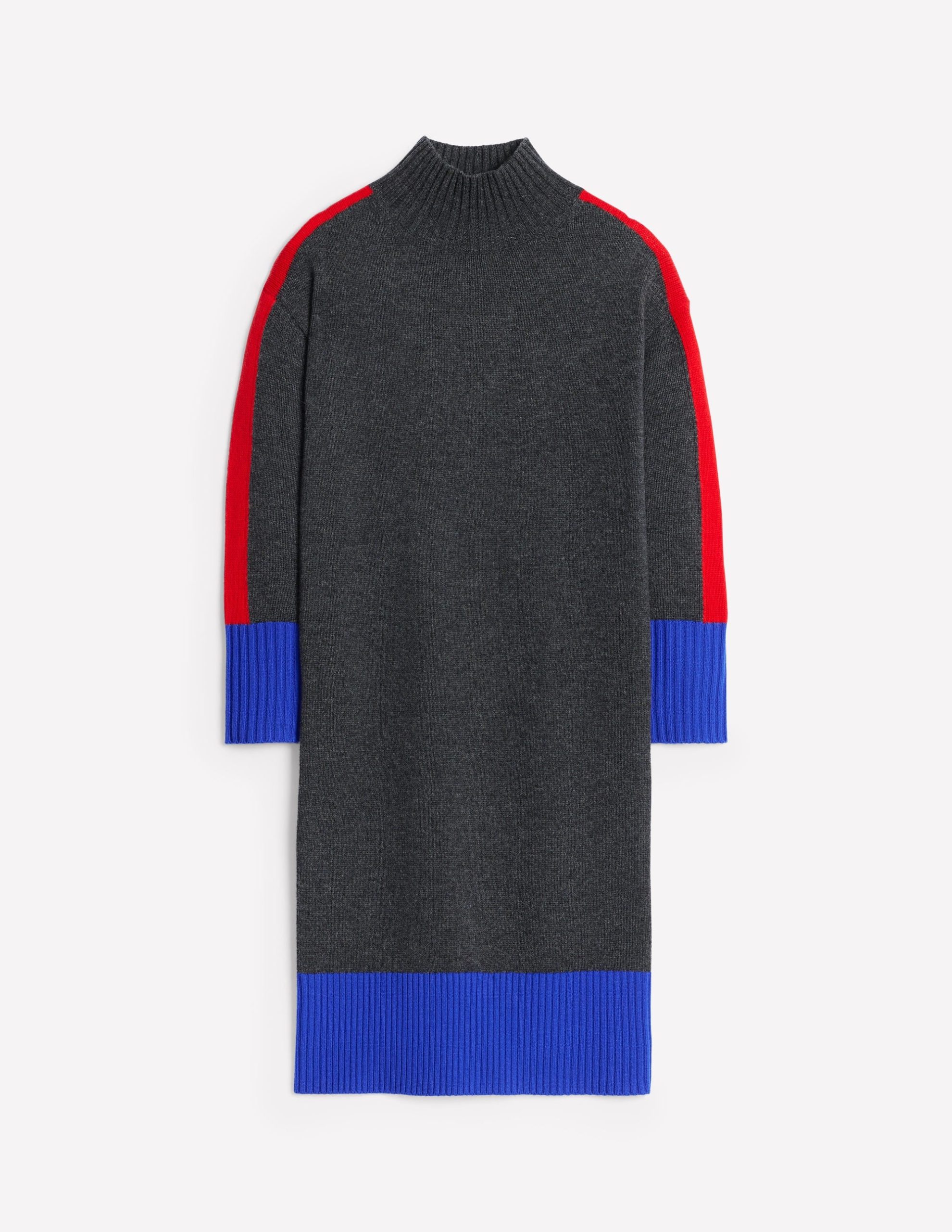 Merino Knitted Dress-Charcoal Colorblock