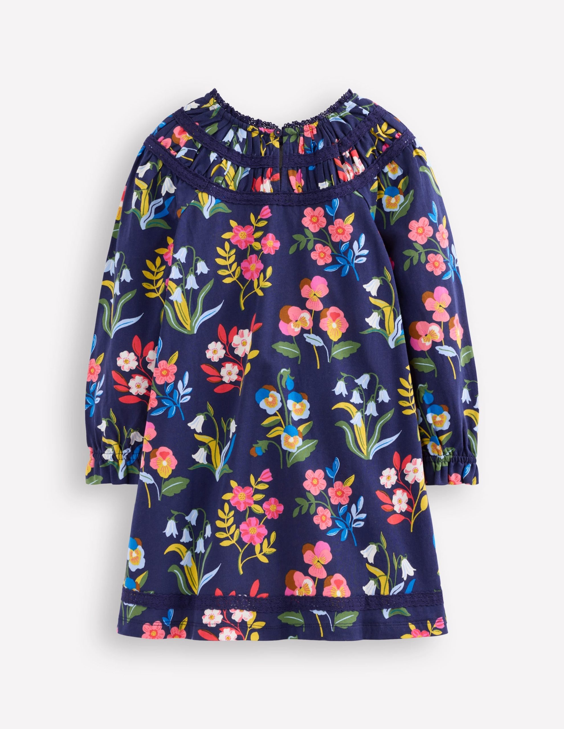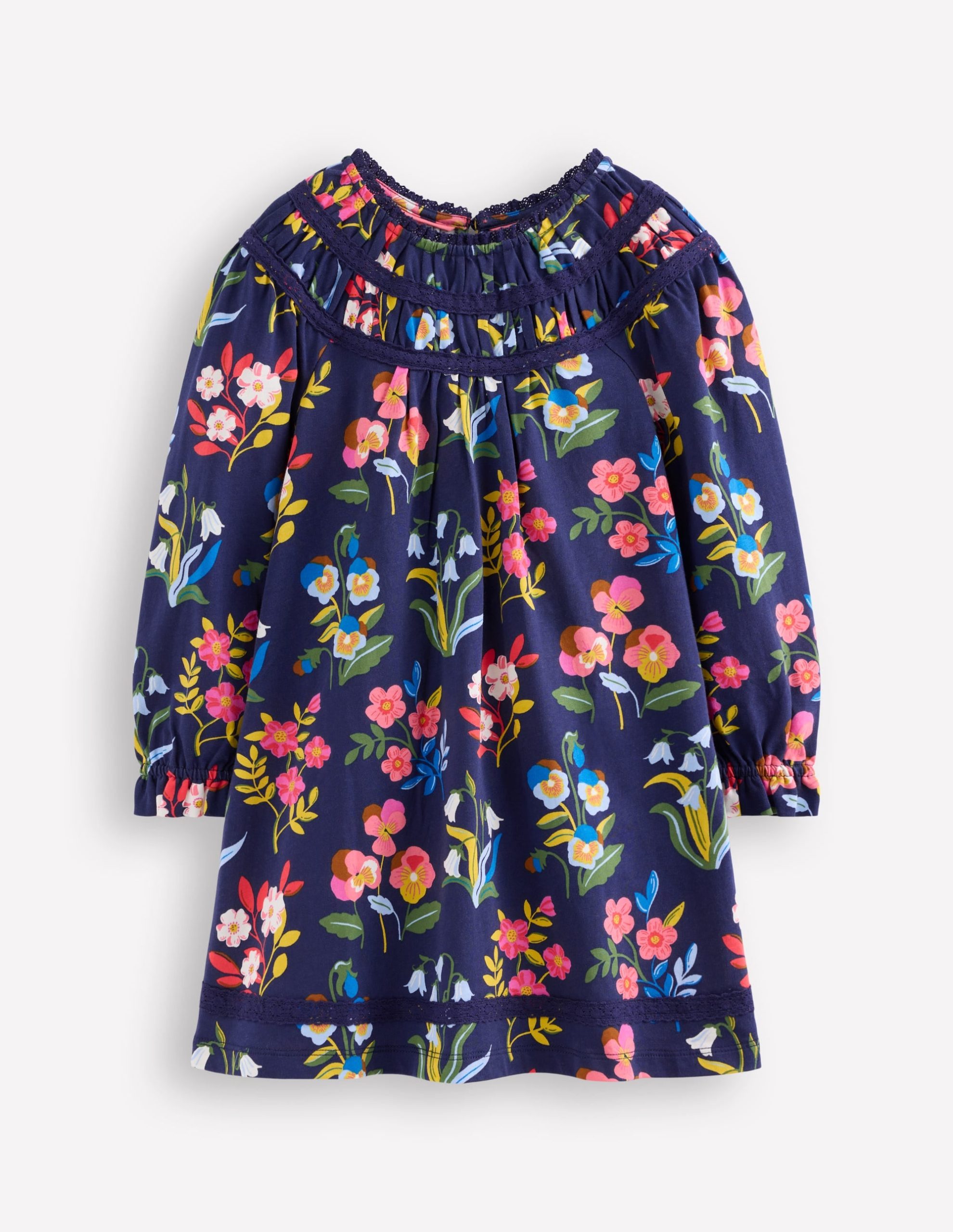 Pretty Lace Trim Jersey Dress-College Navy Pansy Bed