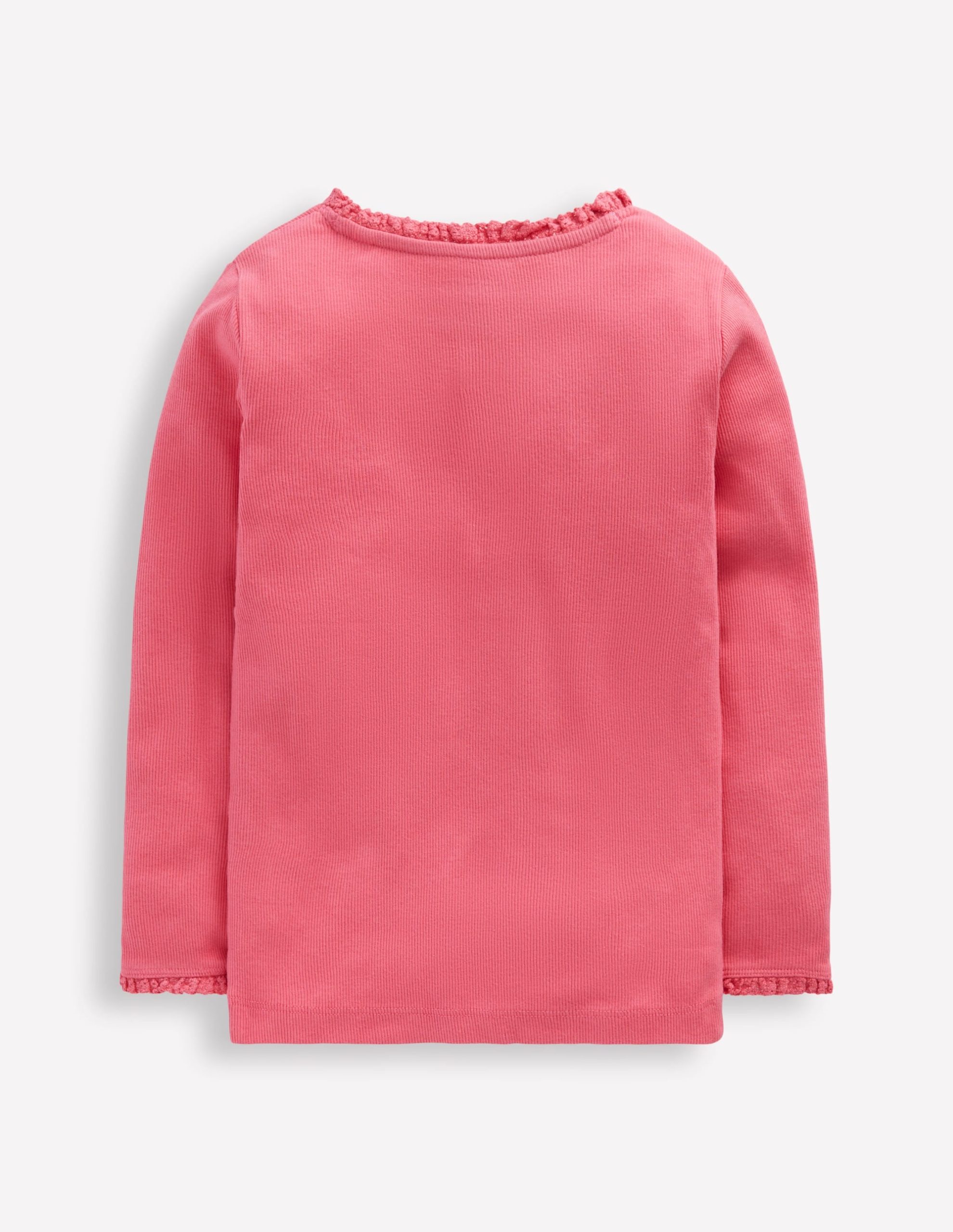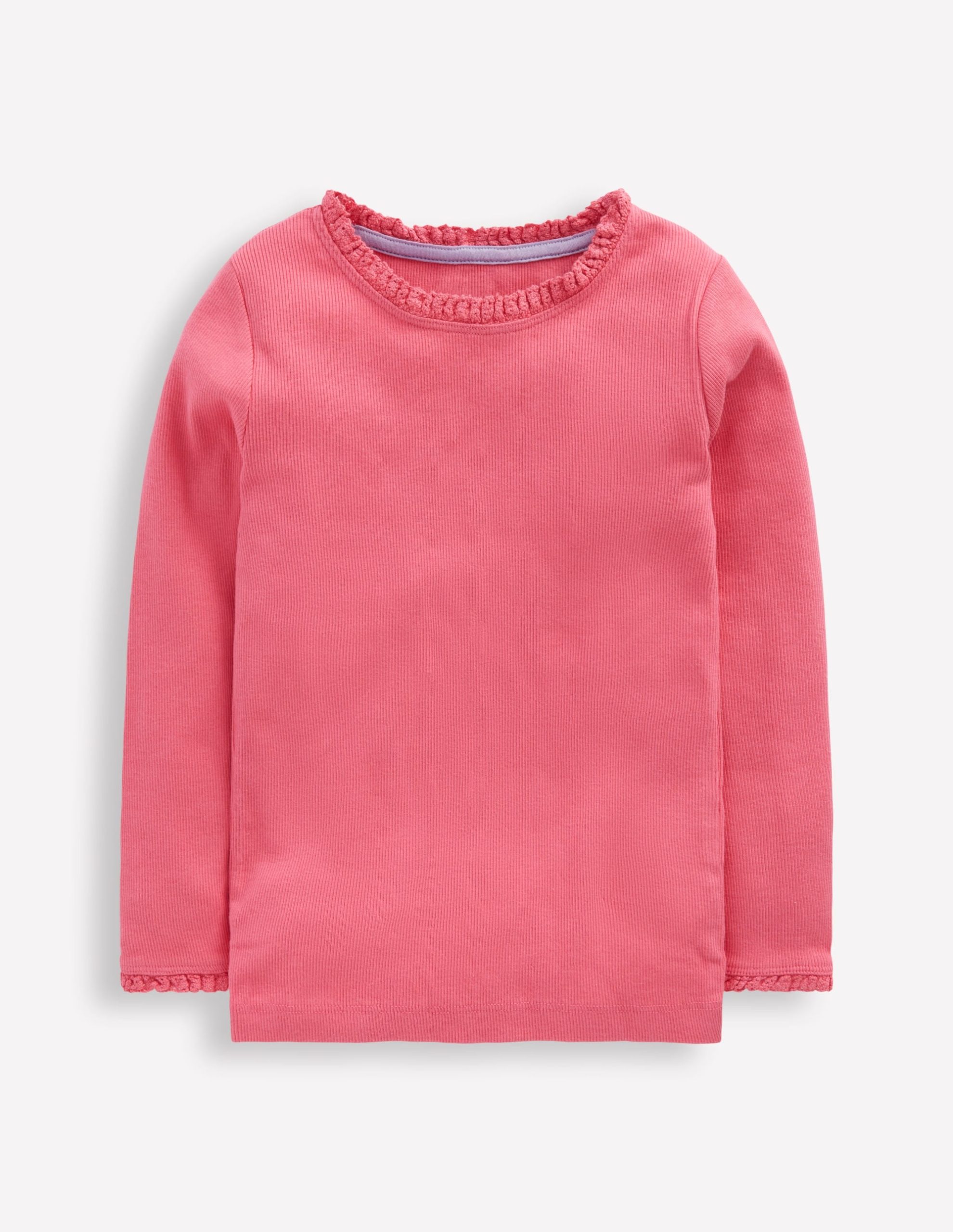 Ribbed Long Sleeve T-shirt-Rose Pink