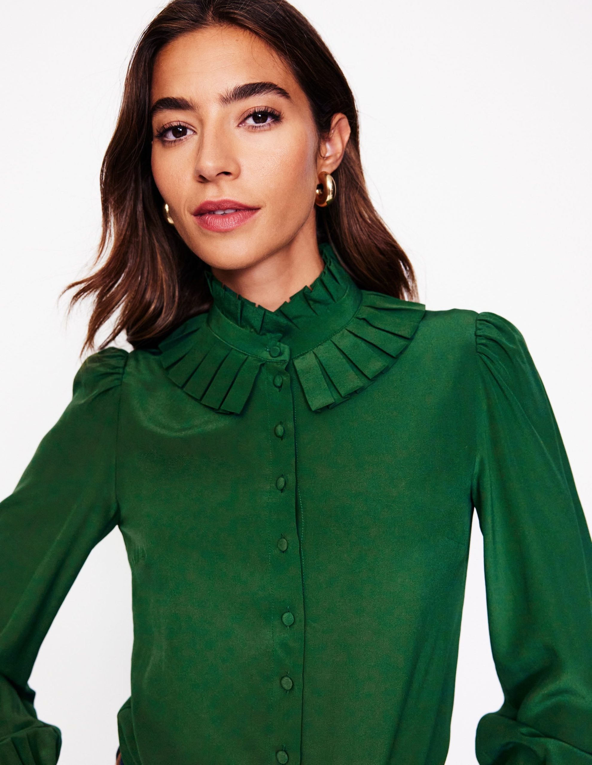 Ruffle Collar Silk Blouse-Pine