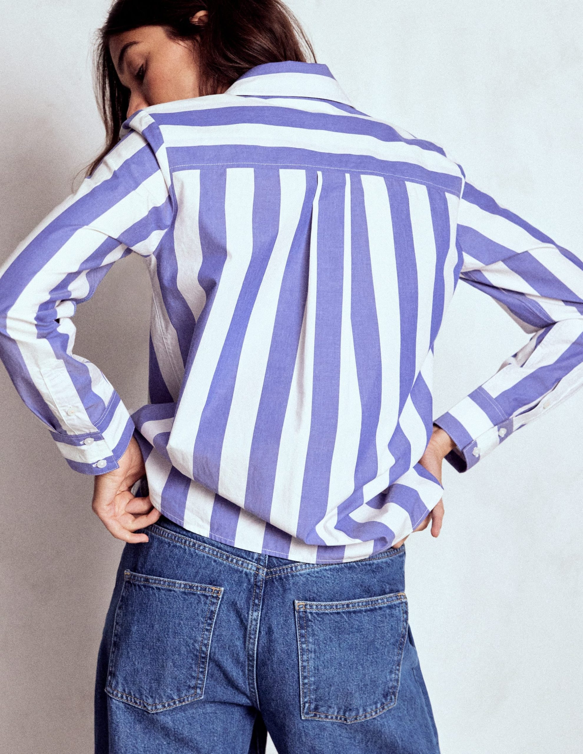Sienna Cotton Shirt-Bright Blue and Ivory Stripe