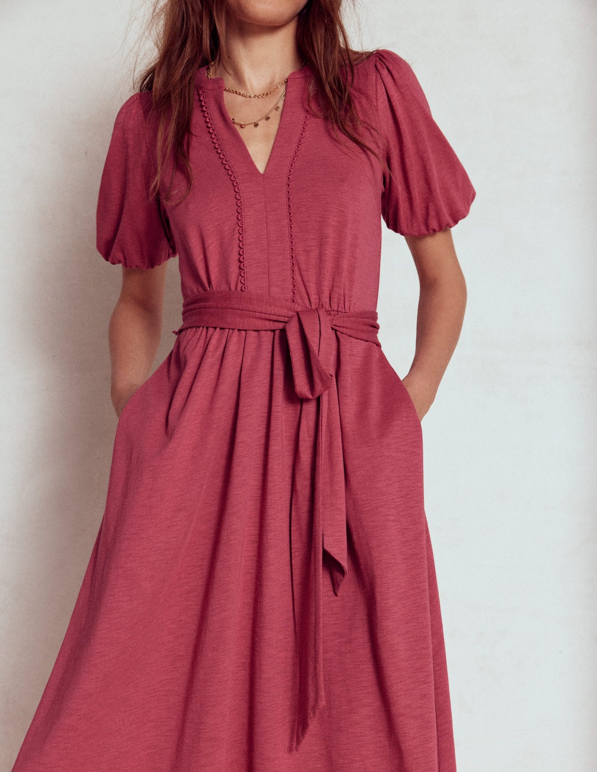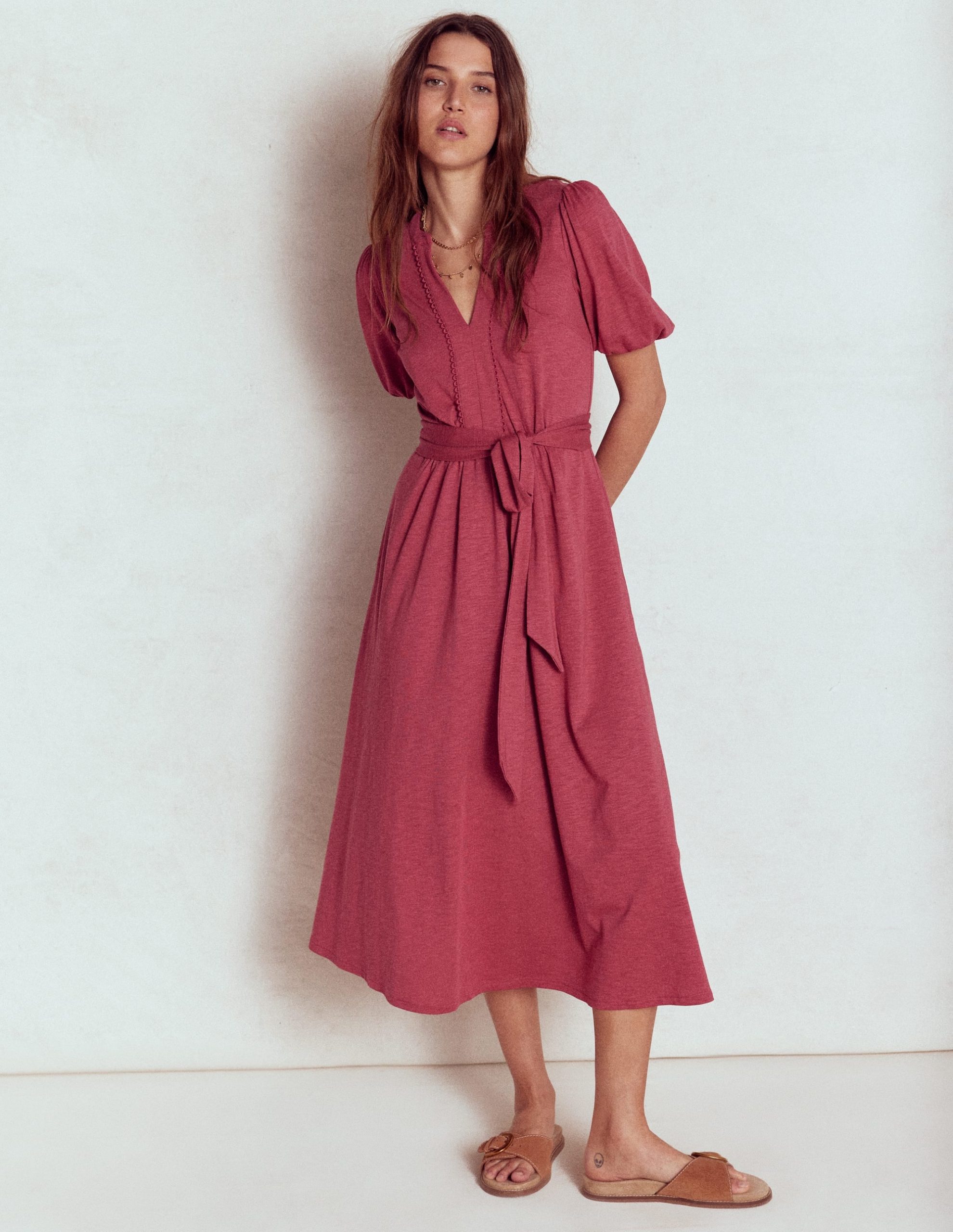 Sofia Trim Jersey Midi Dress-Terracotta Red
