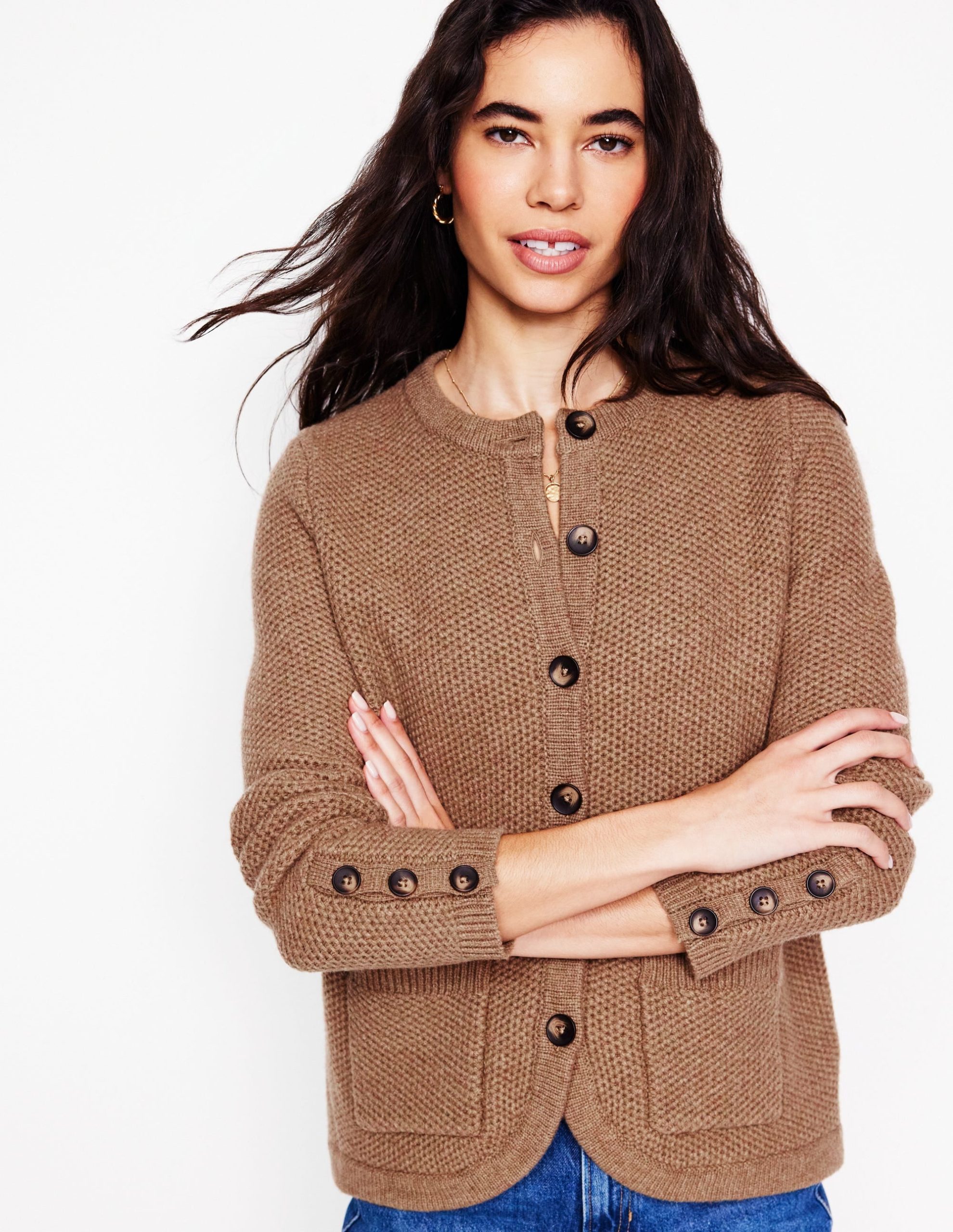 Textured Stitch Cardigan-Praline Brown