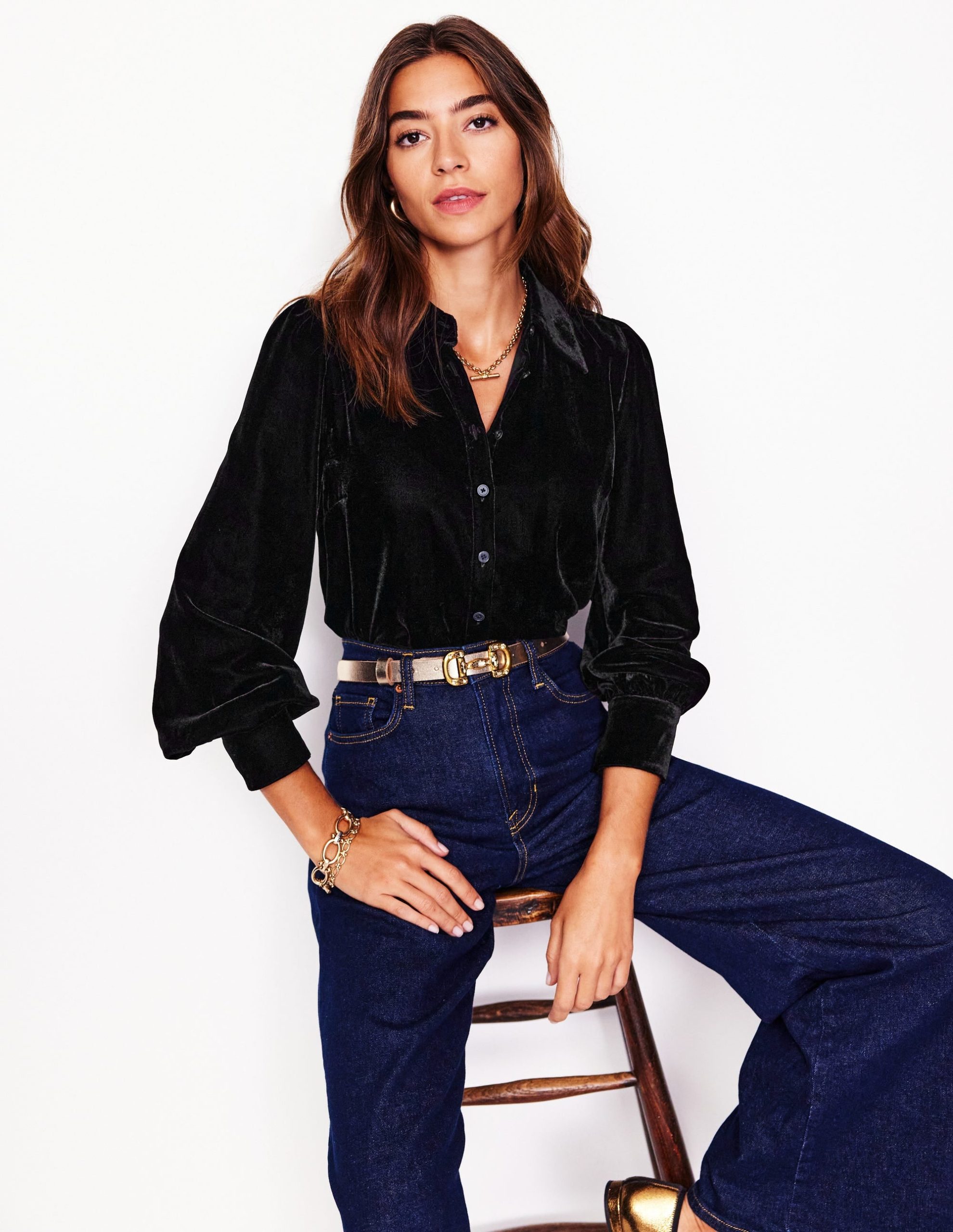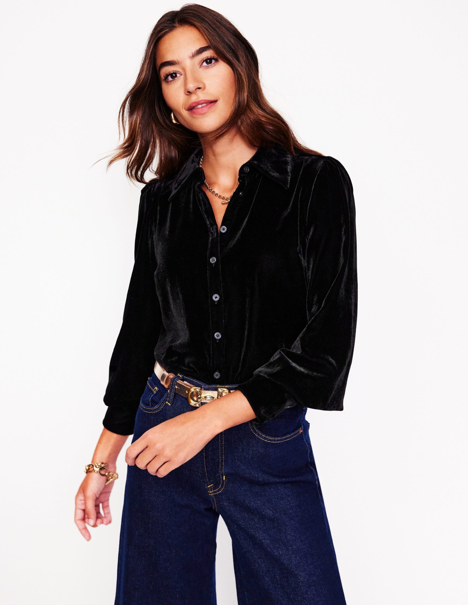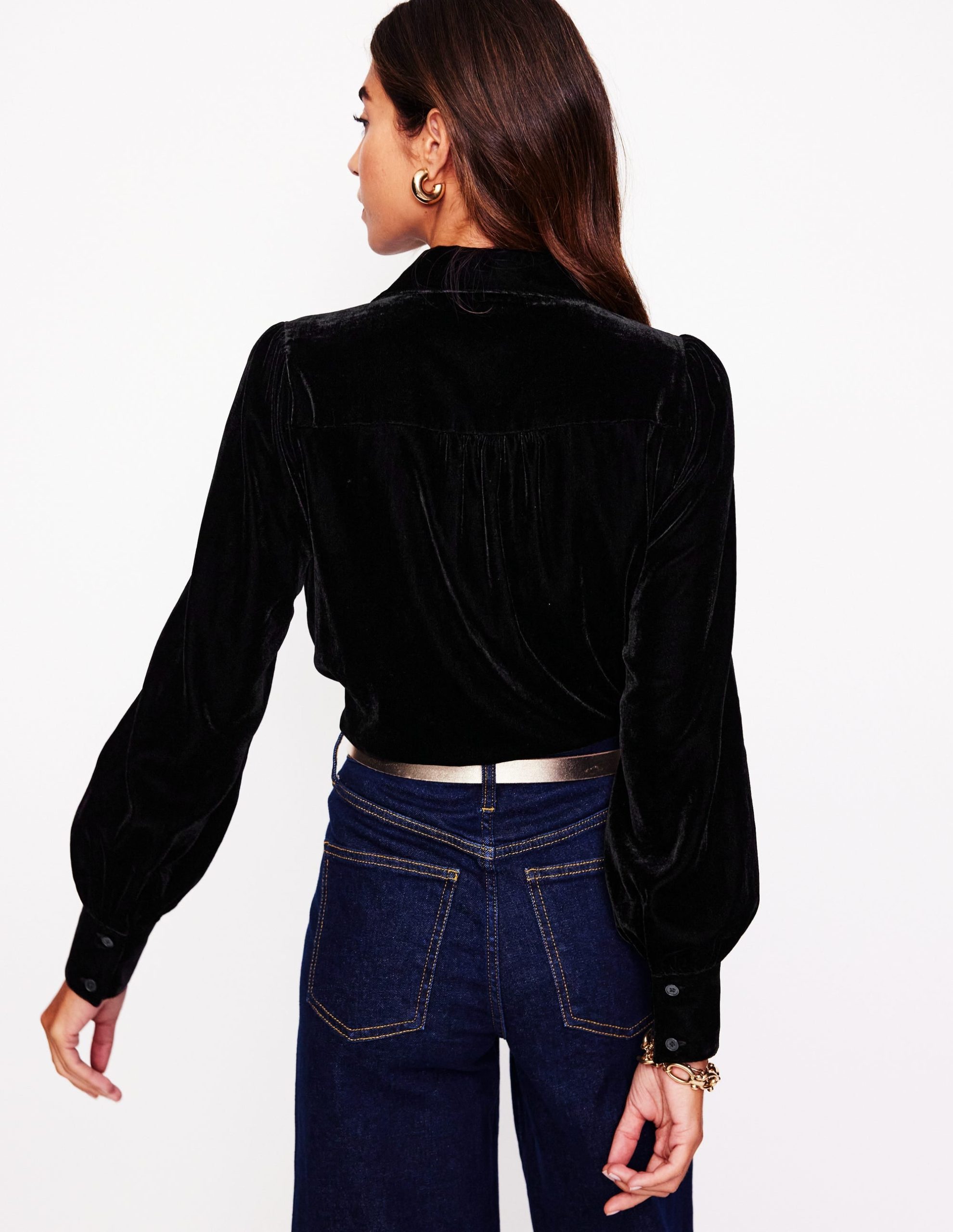 Feeling fancy? Velvet is second to none. Our shirt has soft gathers for subtle volume through the sleeves.